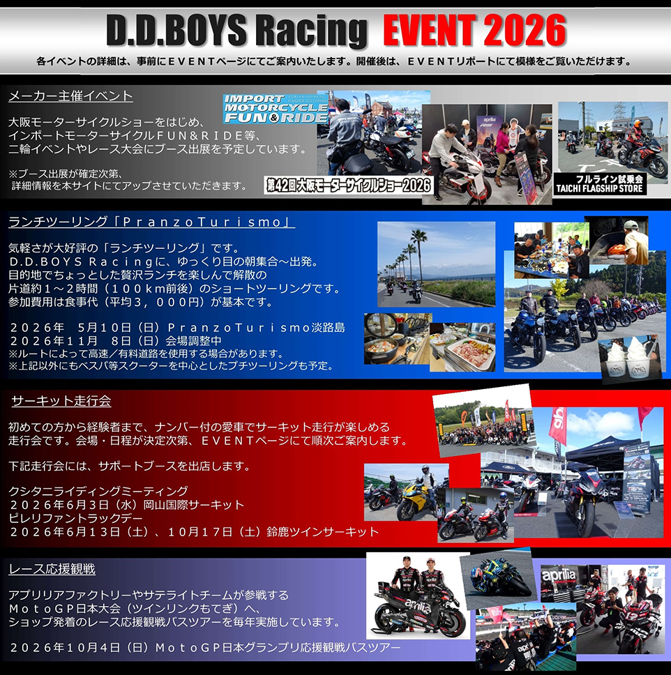 アプリリア、モト・グッツィ、ベスパの最新ラインアップの展示とご試乗が可能です。