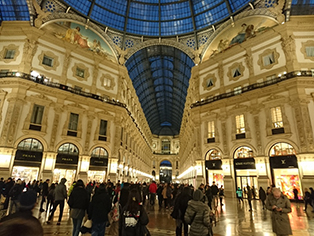 イタリア最大のゴシック建築、ドゥオモの見学をはじめ、カフェや有名ブランドが並ぶアーケードにて、